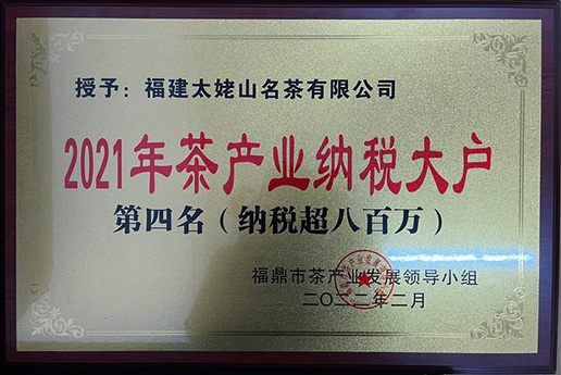 • 2021年茶产业纳税大户荣誉证书
