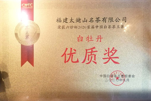 • 2020年首届中国白茶茶王赛白牡丹优质奖